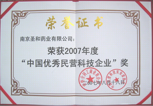 2007中國優(yōu)秀民營科技企業(yè)