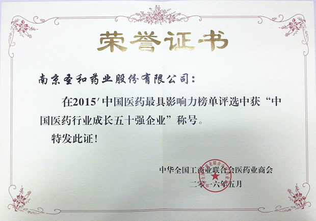 2015年度中國(guó)醫(yī)藥行業(yè)成長(zhǎng)50強(qiáng)企業(yè)