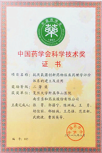 中國藥學(xué)會(huì)科學(xué)技術(shù)獎(jiǎng)二等獎(jiǎng)